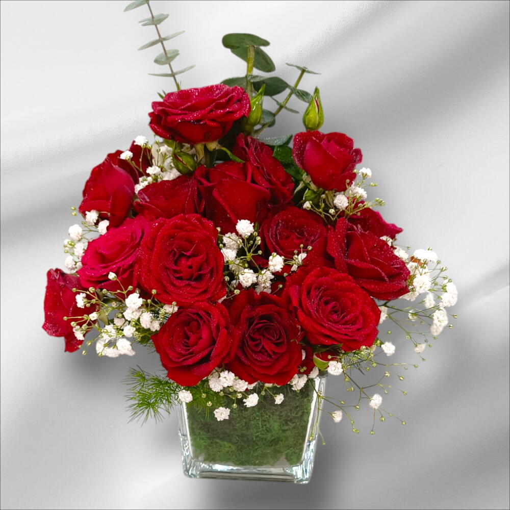 Украсьте своё пространство этой элегантной композицией из 12 красных роз в сочетании с нежной гипсофилой в стильной вазе. Это прекрасное сочетание передаёт суть романтики и очарования, что делает её идеальным подарком для близких или прекрасным дополнением к вашему домашнему декору. Мягкая гипсофила дополняет насыщенные красные розы, создавая впечатляющий визуальный контраст. Особенности: 12 эффектных красных роз: символизируют любовь и страсть, идеальны для любого повода. Нежная гипсофила: добавляет мягкую, воздушную нотку в композицию. Эвкалиптовая нотка: придаёт свежий аромат и визуальную привлекательность. Стильная ваза в комплекте: готова к размещению и украсит любой интерьер. Идеальный подарок: подходит для годовщин, дней рождения или просто чтобы сказать «я люблю тебя».
