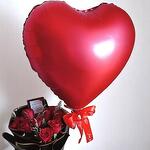 Red rose - 10 шт. Limonium - 6 шт. шар в форме сердца - 1 шт.