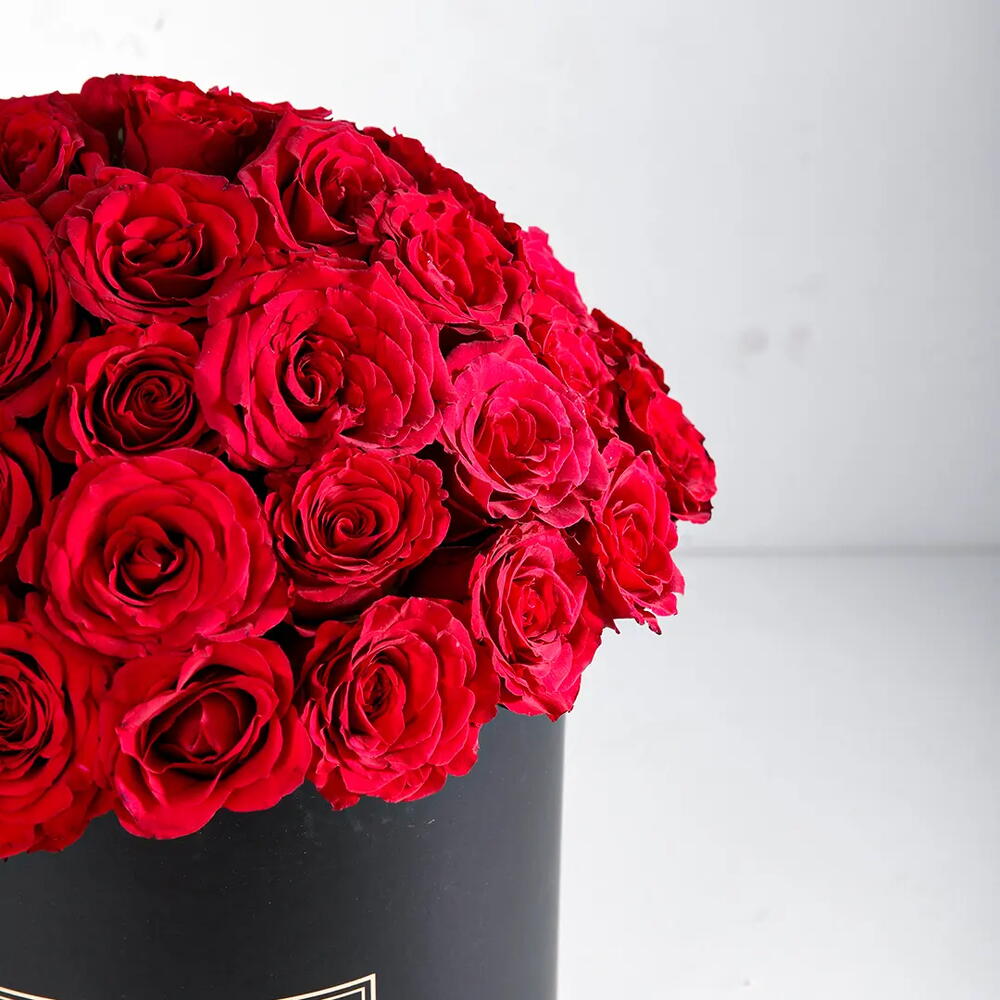 Роскошная композиция из 50 бархатных красных роз, элегантно представленная в стильной коробке. Каждая роза отобрана вручную за насыщенный, глубокий цвет и безупречный бутон, символизируя любовь, страсть и восхищение. Коробка подчёркивает изысканность оформления, делая её идеальной для романтических жестов, особых торжеств или в качестве потрясающего подарка. Эта вневременная композиция наверняка произведёт неизгладимое впечатление своей красотой и утончённой элегантностью.