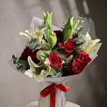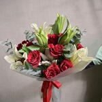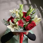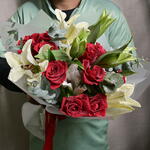 Букет из красных роз и белых лилий 6552