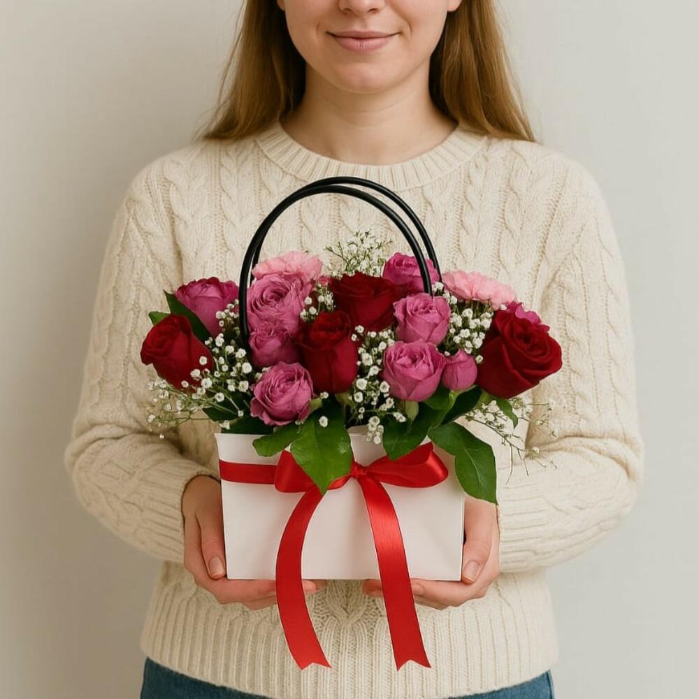 Box - 1 шт. baby breath - 2 шт. роза-спрей Джульет - 3 шт. red roses - 10 шт.