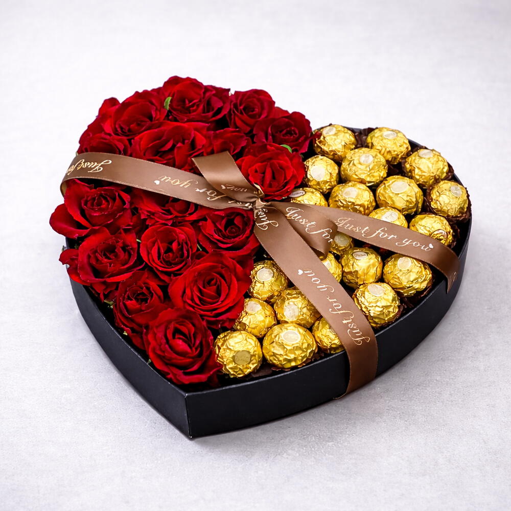 Основные характеристики: 🌹 25 премиальных свежих красных роз 🍫 26 конфет Ferrero Rocher ❤️ Элегантный дизайн роскошной коробки в форме сердца 🎁 Романтическое роскошное сочетание подарков 🚚 Доставка цветов в Дубае в тот же день по предварительной записи Выберите этот набор 25 красных роз с коробкой‑сердцем из 26 конфет Ferrero Rocher от Mystic Flowers Dubai, когда хотите выразить любовь, страсть и сладость самым незабываемым образом.
