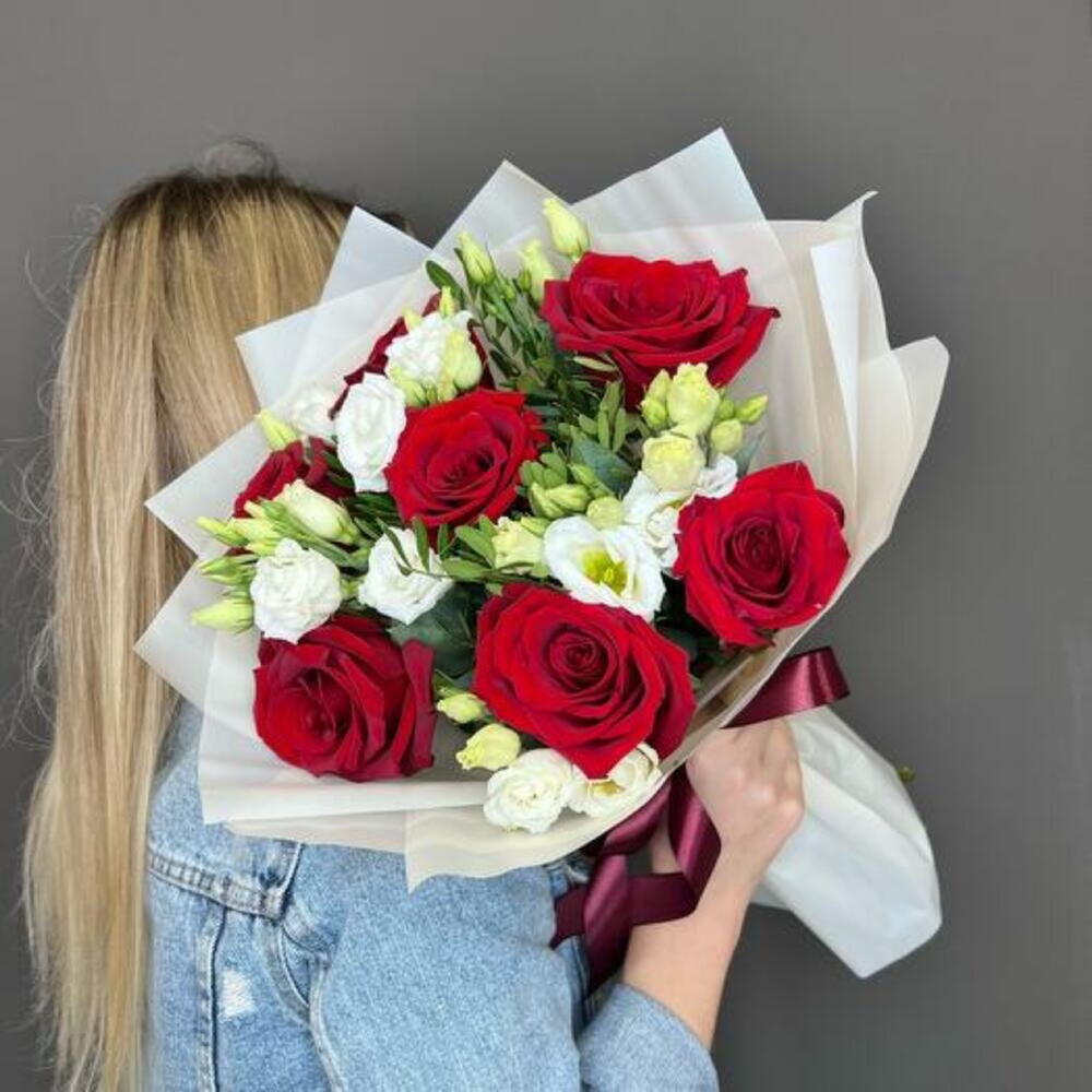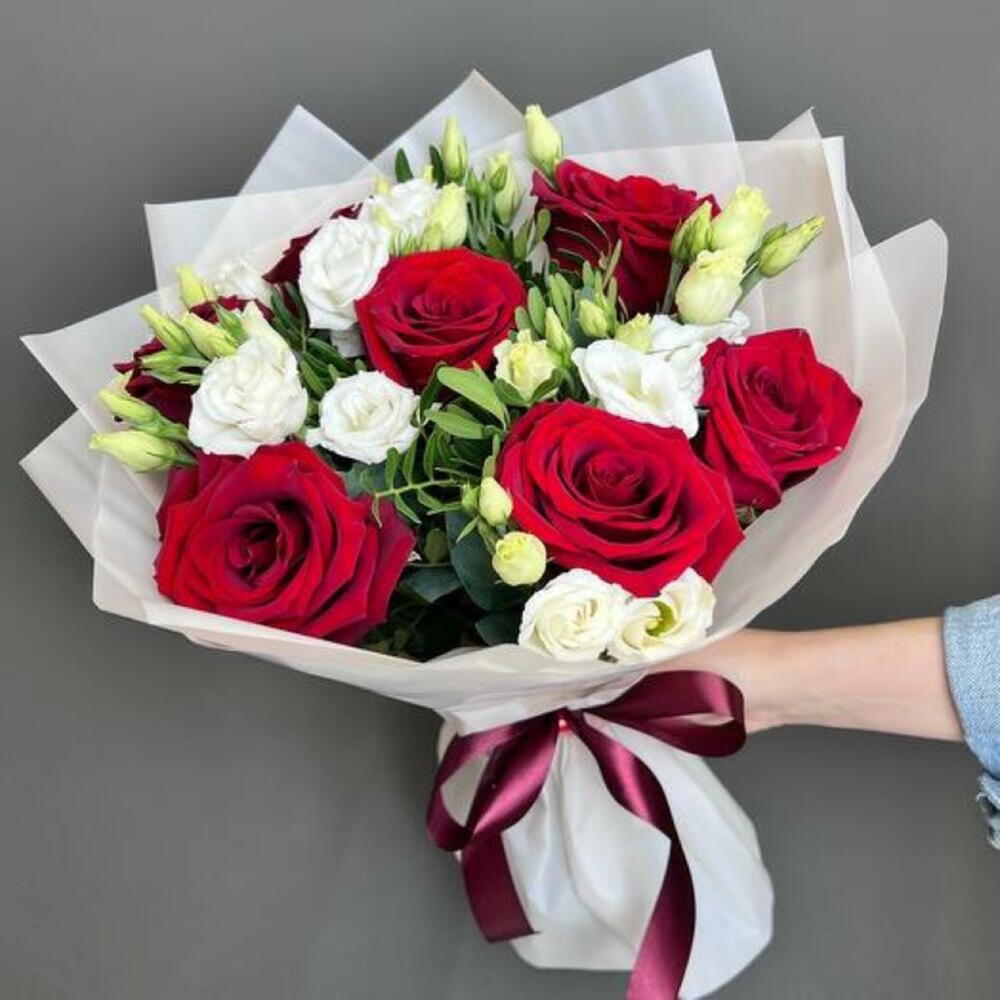 Сделайте любое событие особенным с нашим букетом. Этот великолепный букет сочетает бархатные красные розы, символизирующие страстную любовь, с нежной красотой белой эустомы. Сделанный вручную с заботой, этот букет идеально подходит для выражения искренних чувств и создания неизгладимого впечатления. Доставляется красиво оформленным и готовым радовать.