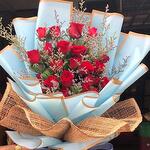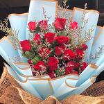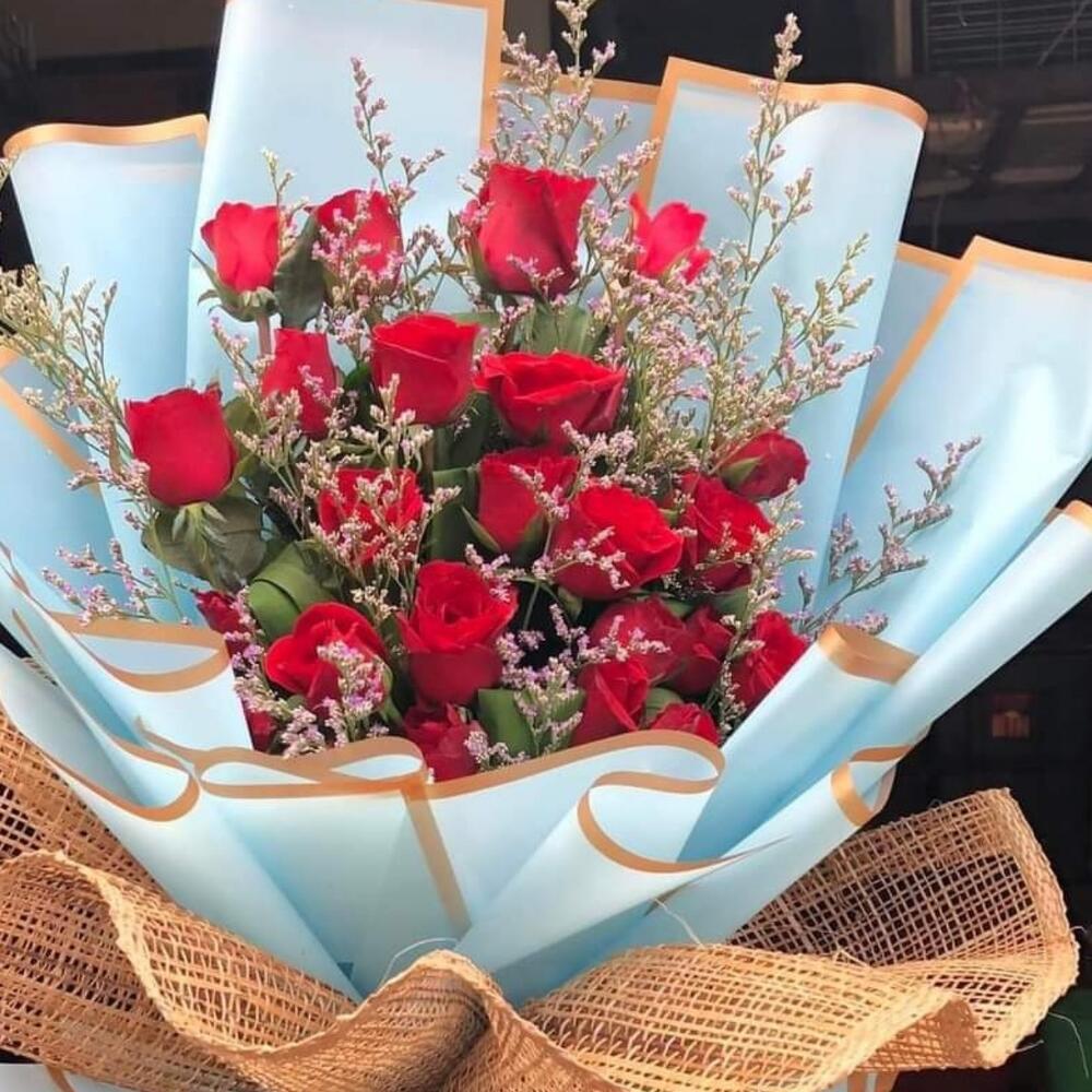 Red rose - 21 шт. Limonium - 9 шт.