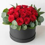 Это роскошное сочетание глубоко красных роз воплощает вечную романтику и элегантность. Уложенные в стильной черной шляпной коробке, яркие цветы красиво оттенены свежей зеленью, создавая поразительный контраст, привлекающий взгляд. Идеально подходит для выражения любви, восхищения или празднования; эта коробка — изысканный выбор для годовщин, Дня Святого Валентина или любого особого случая. Каждая роза тщательно отобрана за насыщенный цвет и свежесть, что гарантирует, что ваш подарок произведет неизгладимое впечатление. Чтобы продлить ее красоту, держите композицию вдали от прямых солнечных лучей и сквозняков, а также добавляйте небольшое количество воды в флористическую пену каждые 2–3 дня. Благодаря современному оформлению и классическому очарованию, эта композиция в шляпной коробке — поистине незабываемый подарок.