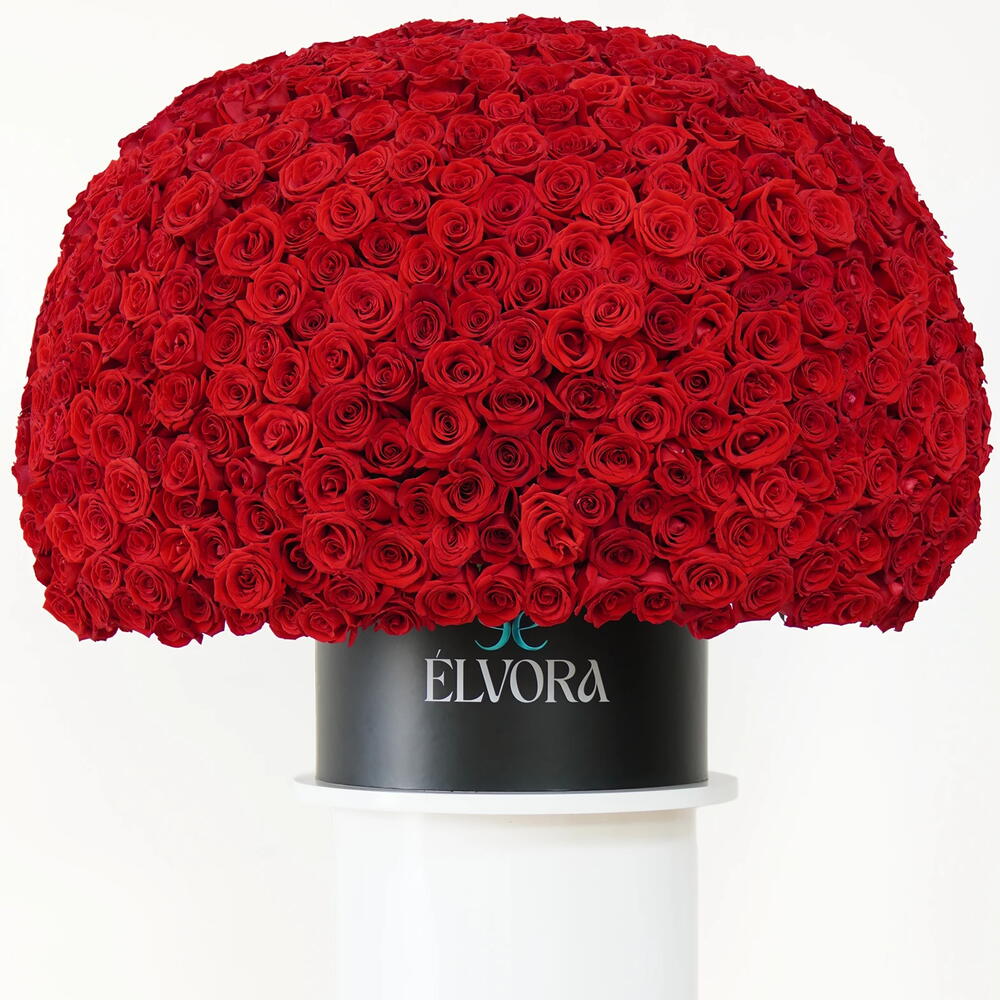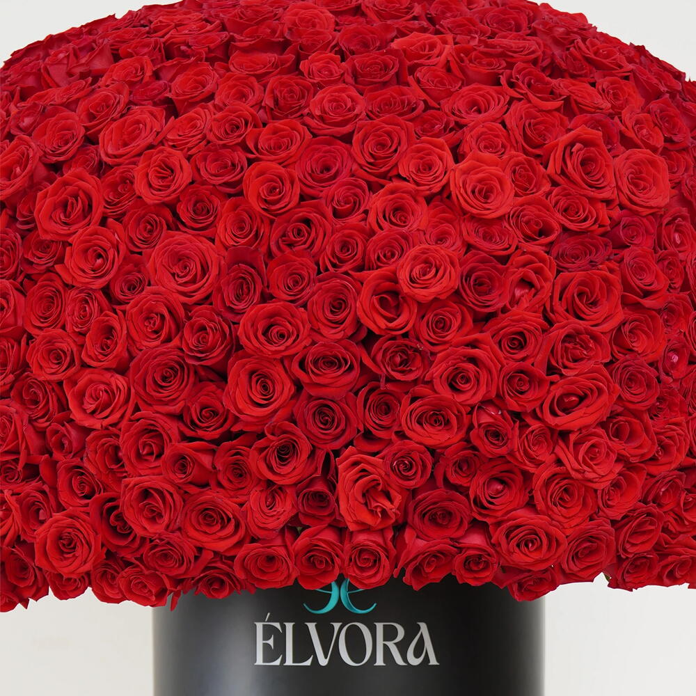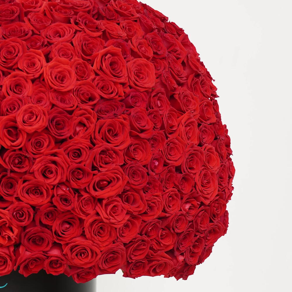 Red Roses Crimson Beauty — мощное цветочное воплощение, основанное на глубине и интенсивности. Пышный купол насыщенных красных цветов грациозно возвышается на чистой высокой вазе, создавая смелый контраст между страстью и простотой. Эта композиция рассказывает историю сильных эмоций, переданных с элегантностью — идеально подходит для изысканных подарков ко Дню святого Валентина, когда цветы должны говорить тихо, но оставлять неизгладимое впечатление.