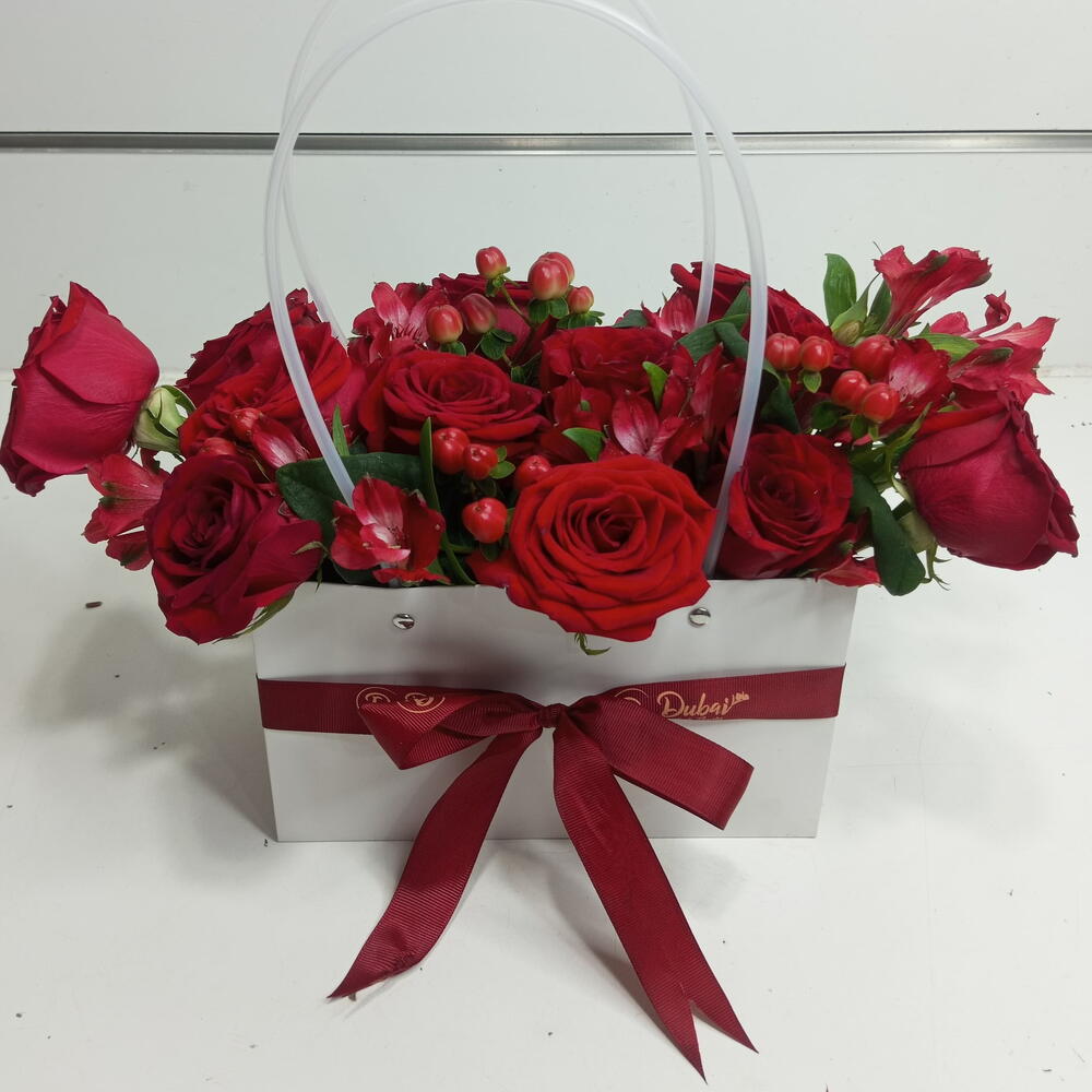 Box - 1 шт. гиперикум - 5 шт. red roses - 10 шт.