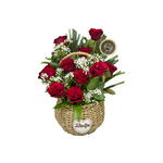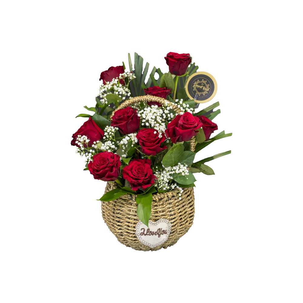 Классическая композиция из 10 свежих красных роз, красиво оформленная в очаровательной цветочной корзине — идеально подходит для выражения любви и восхищения.