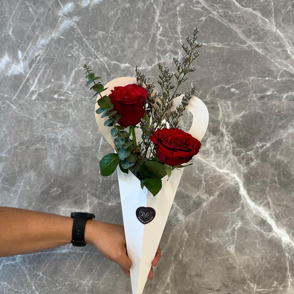 Красные розы в конусе в форме сердца
