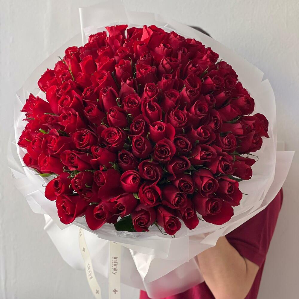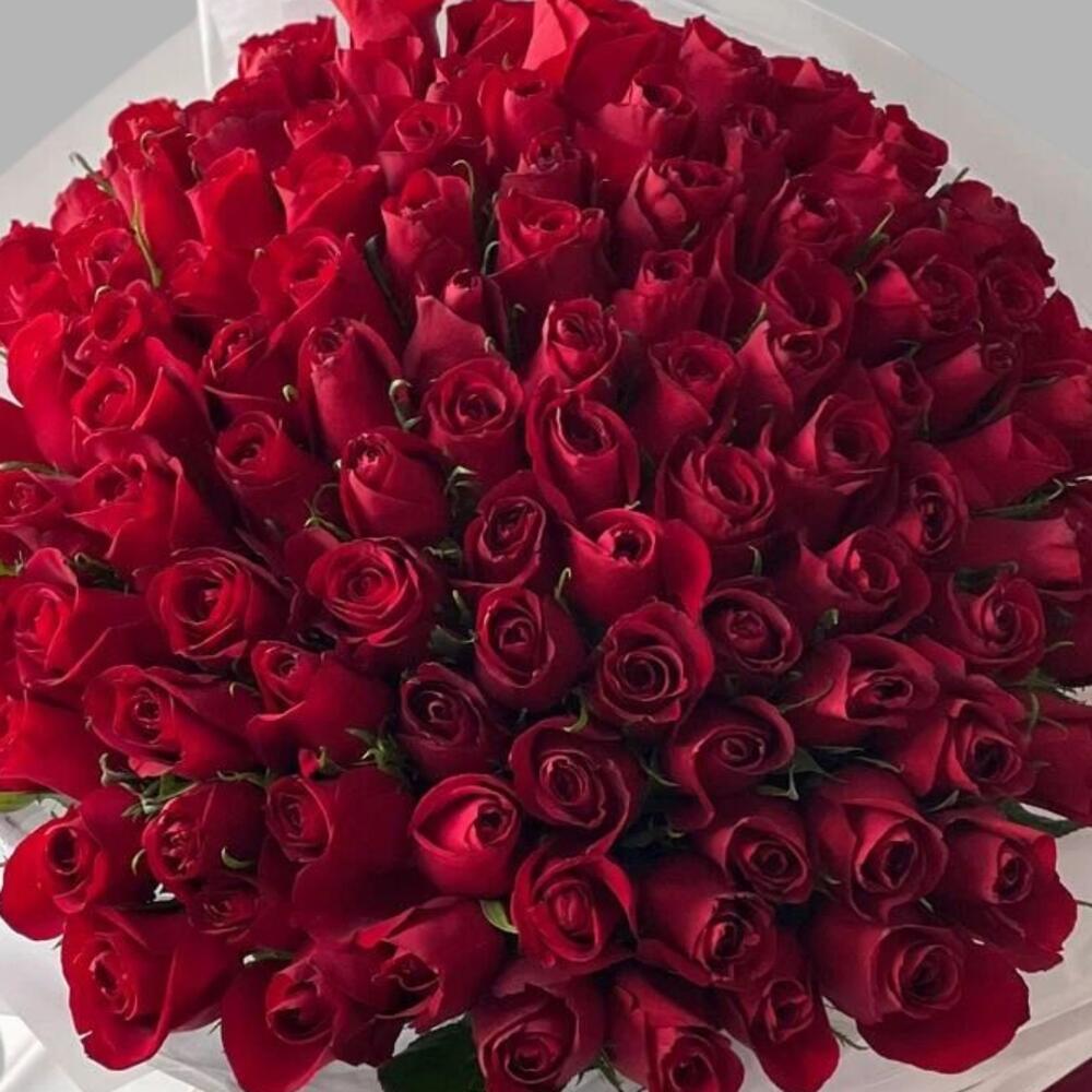 ярко-красные розы - 101 шт.