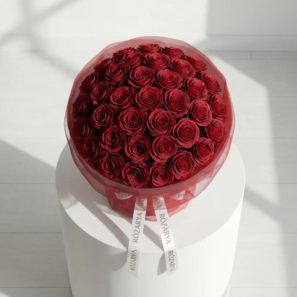 Премиальная моно-композиция из темно-красных роз в нашем фирменном стиле «красное облако». Уложена слоями дизайнерской красной сетки и завершена культовой фирменной лентой Rozarya. Идеальное воплощение классического романтизма и современной минималистской роскоши. • Обратите внимание: поскольку цветы — натуральный продукт, фактические цвета могут незначительно отличаться от цифровых изображений из-за сезонного роста и условий освещения. Мы гарантируем, что общий стиль, премиальное качество, а также свежесть вашей композиции всегда будут сохранены. • Обратите внимание: поскольку цветы — натуральный продукт, фактические цвета могут незначительно отличаться от цифровых изображений из-за сезонного роста и условий освещения. Мы гарантируем, что общий стиль, премиальное качество, а также свежесть вашей композиции всегда будут сохранены.