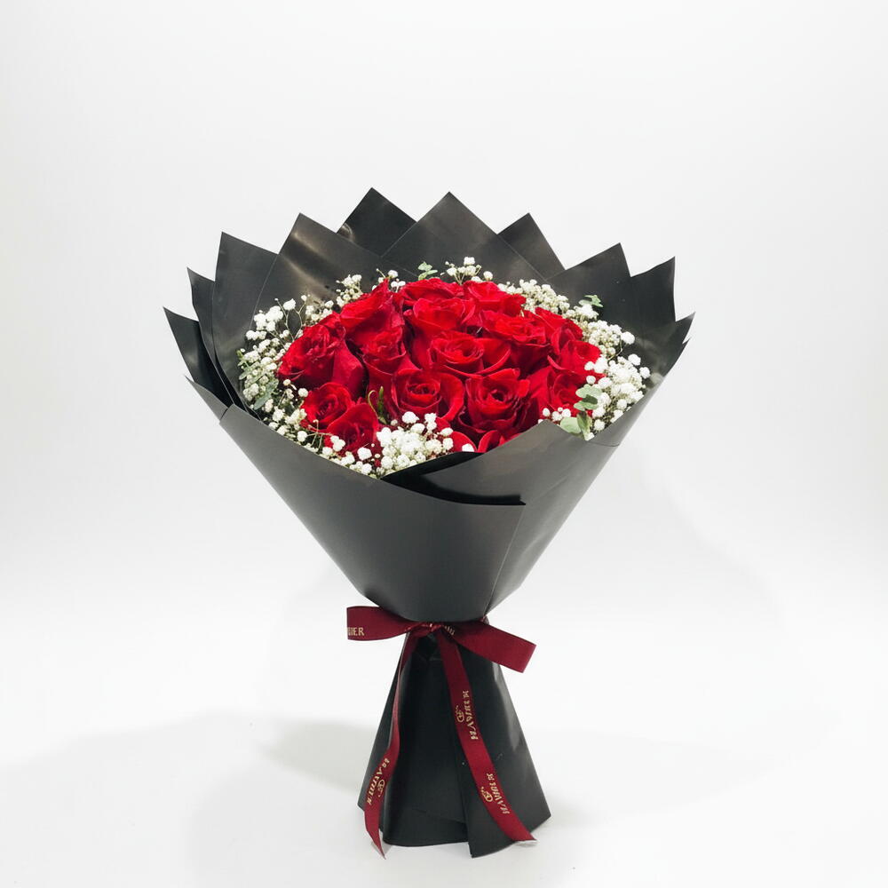Red rose - 20 шт. Gypsophila - 6 шт.