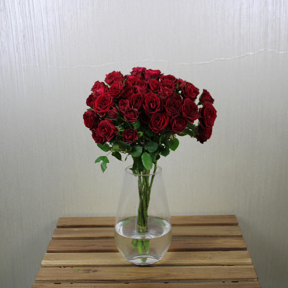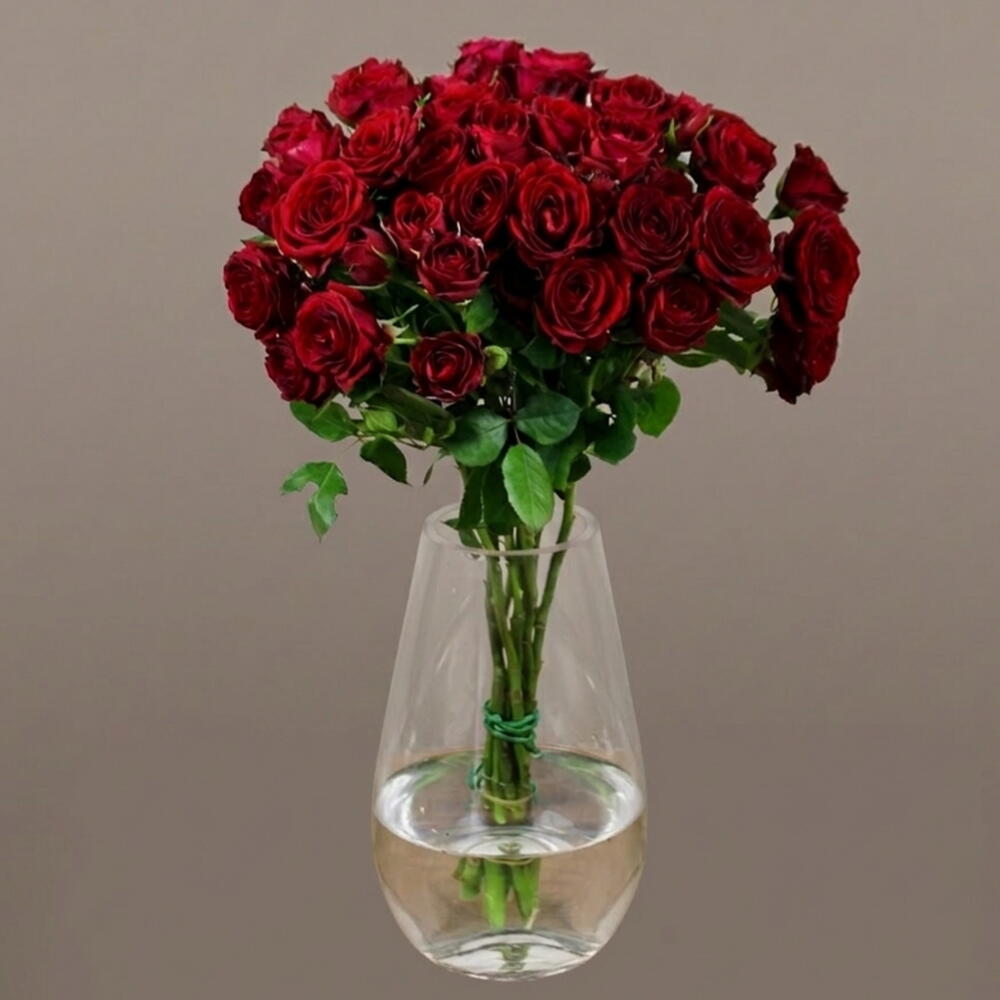 Поразительная композиция из красных спрей-роз в элегантной вазе, источающая вечную красоту и очарование. Каждый стебель украшен кистями ярких красных бутонов, символизирующих любовь, страсть и восхищение. Идеально подходит для любого случая, эта композиция излучает утонченность и тепло. Будь то романтический жест, продуманный подарок или впечатляющий центр стола, красные спрей-розы придают любому пространству атмосферу элегантности и искренних эмоций.