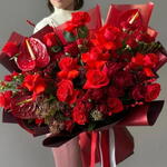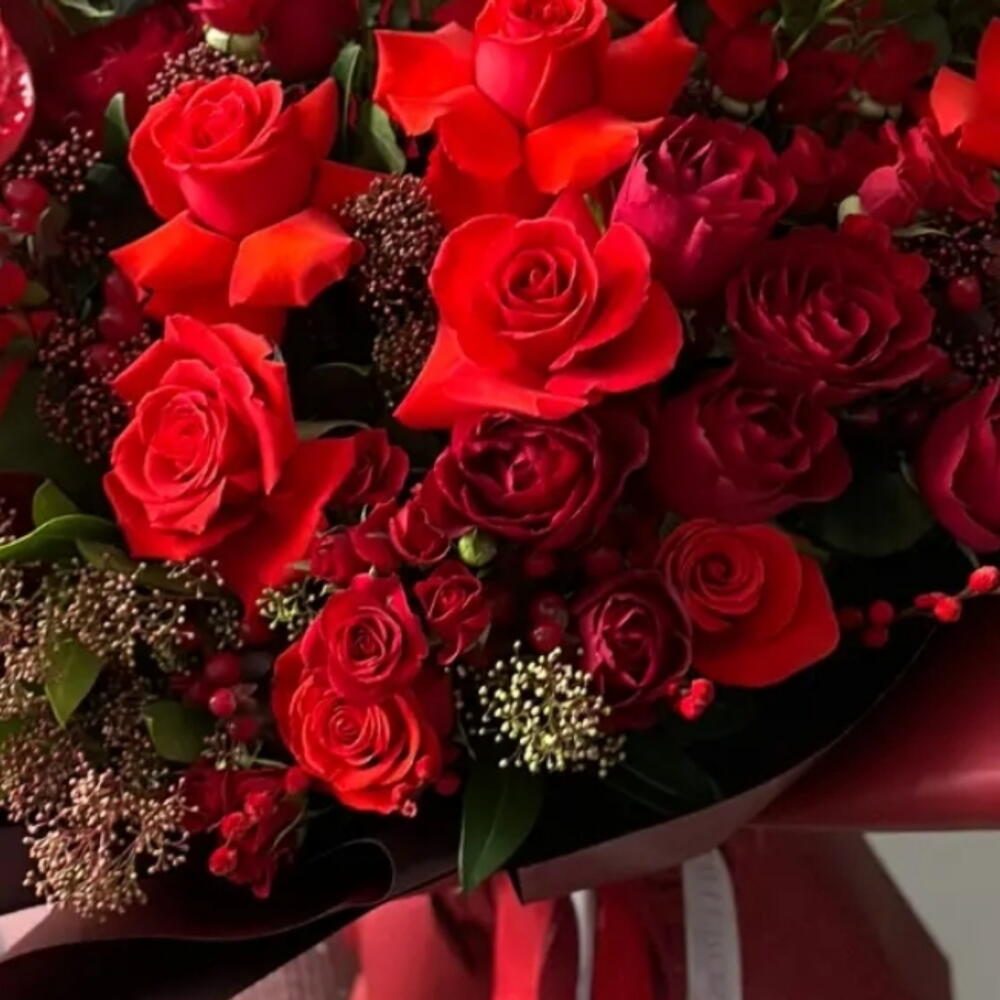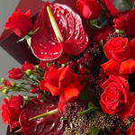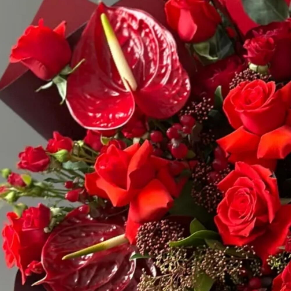 Букет Tango — это премиальная, крупная композиция, предлагаемая онлайн-студией цветов WHITEROSE, базирующейся в Таллине, Эстония. Состав и описание В букете в основном используется сочетание премиальных красных роз, кустовых роз и антуриумов. Также в него входят акцентные цветы и зелень, такие как скимия, илекс и эвкалипт, которые придают композиции текстуру и глубину. Цветы оформлены в насыщенной, страстной красной цветовой гамме и представлены в элегантной упаковке.