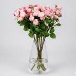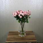 Завораживающая композиция спрей-роз с отогнутыми наружу лепестками, элегантно оформленная в вазе. Каждый цветок демонстрирует свою полную, многослойную красоту: лепестки мягко загнуты наружу, открывая их замысловатую структуру. Композиция излучает утонченность и очарование, делая её идеальным украшением стола или подарком для любого случая. Своей изящной формой и вечной привлекательностью эти спрей-розы придают любому помещению нотку элегантности и природной красоты, оставляя неизгладимое впечатление.