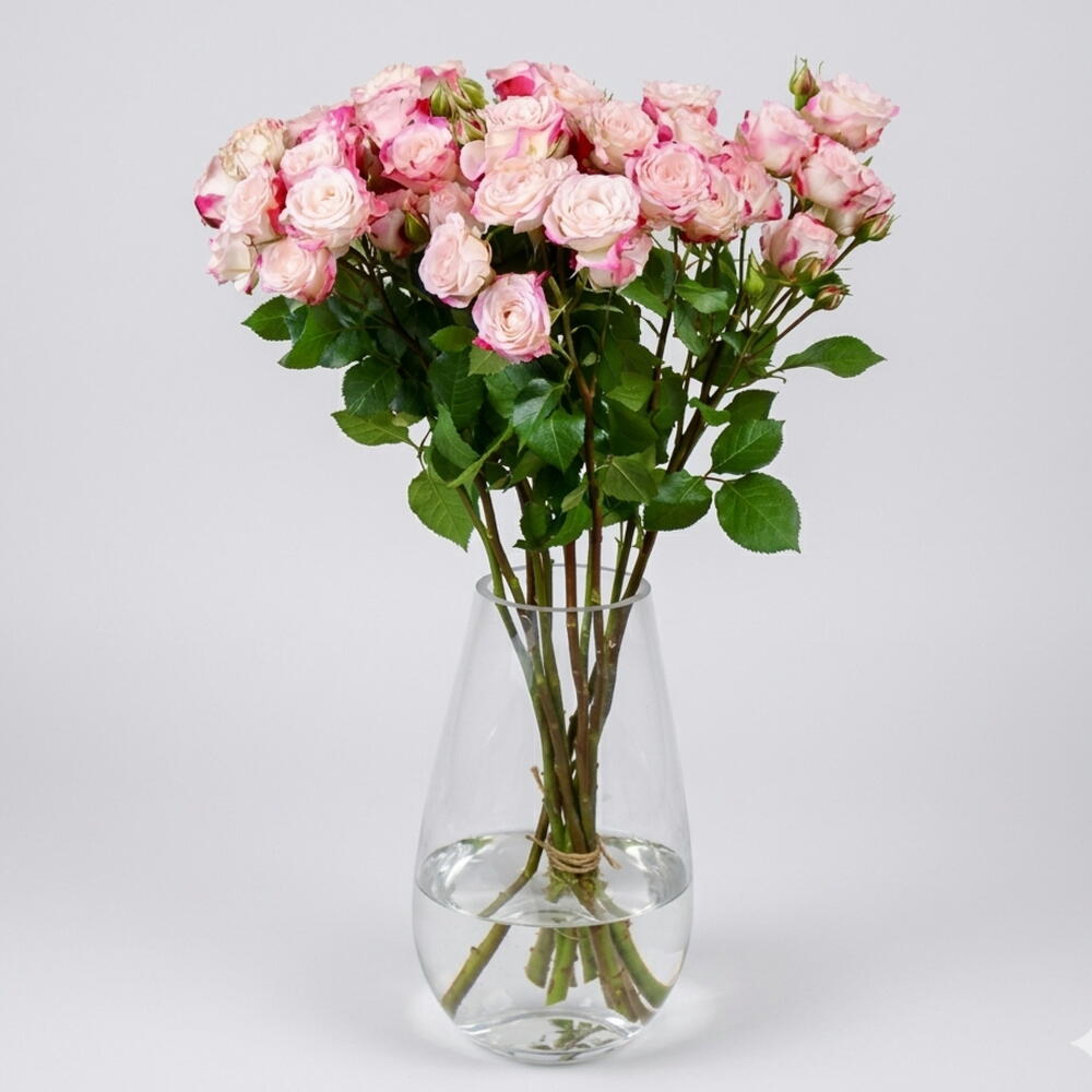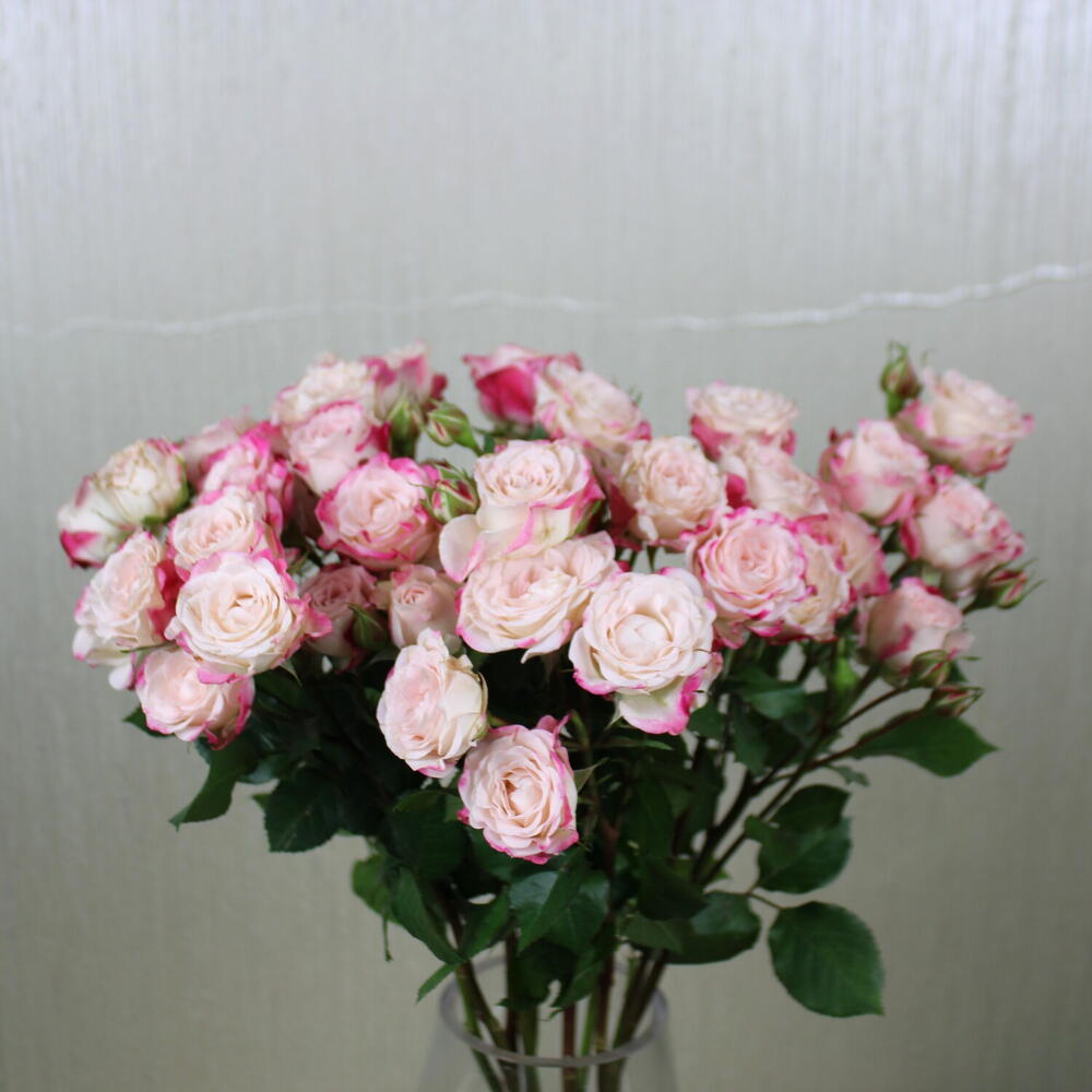 Завораживающая композиция спрей-роз с отогнутыми наружу лепестками, элегантно оформленная в вазе. Каждый цветок демонстрирует свою полную, многослойную красоту: лепестки мягко загнуты наружу, открывая их замысловатую структуру. Композиция излучает утонченность и очарование, делая её идеальным украшением стола или подарком для любого случая. Своей изящной формой и вечной привлекательностью эти спрей-розы придают любому помещению нотку элегантности и природной красоты, оставляя неизгладимое впечатление.