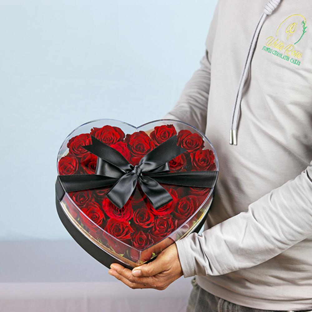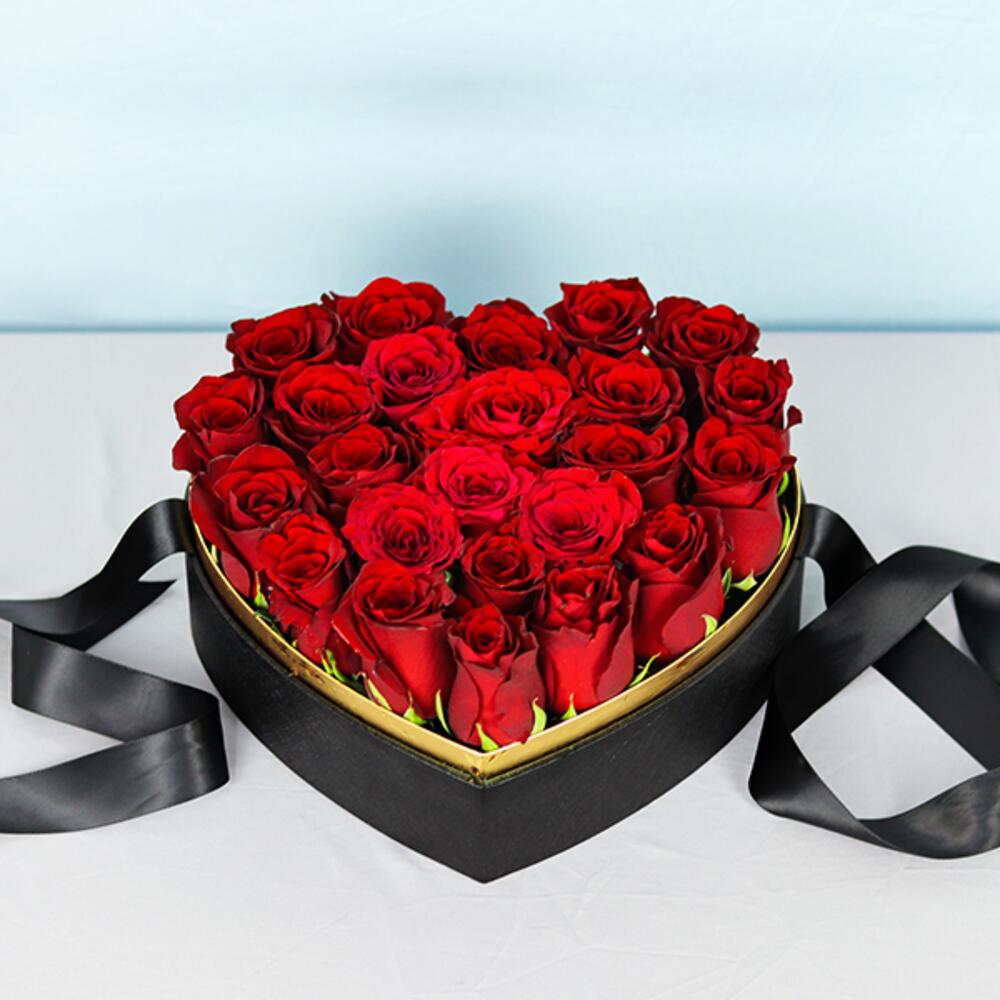Красные розы, уложенные в коробке в форме сердца