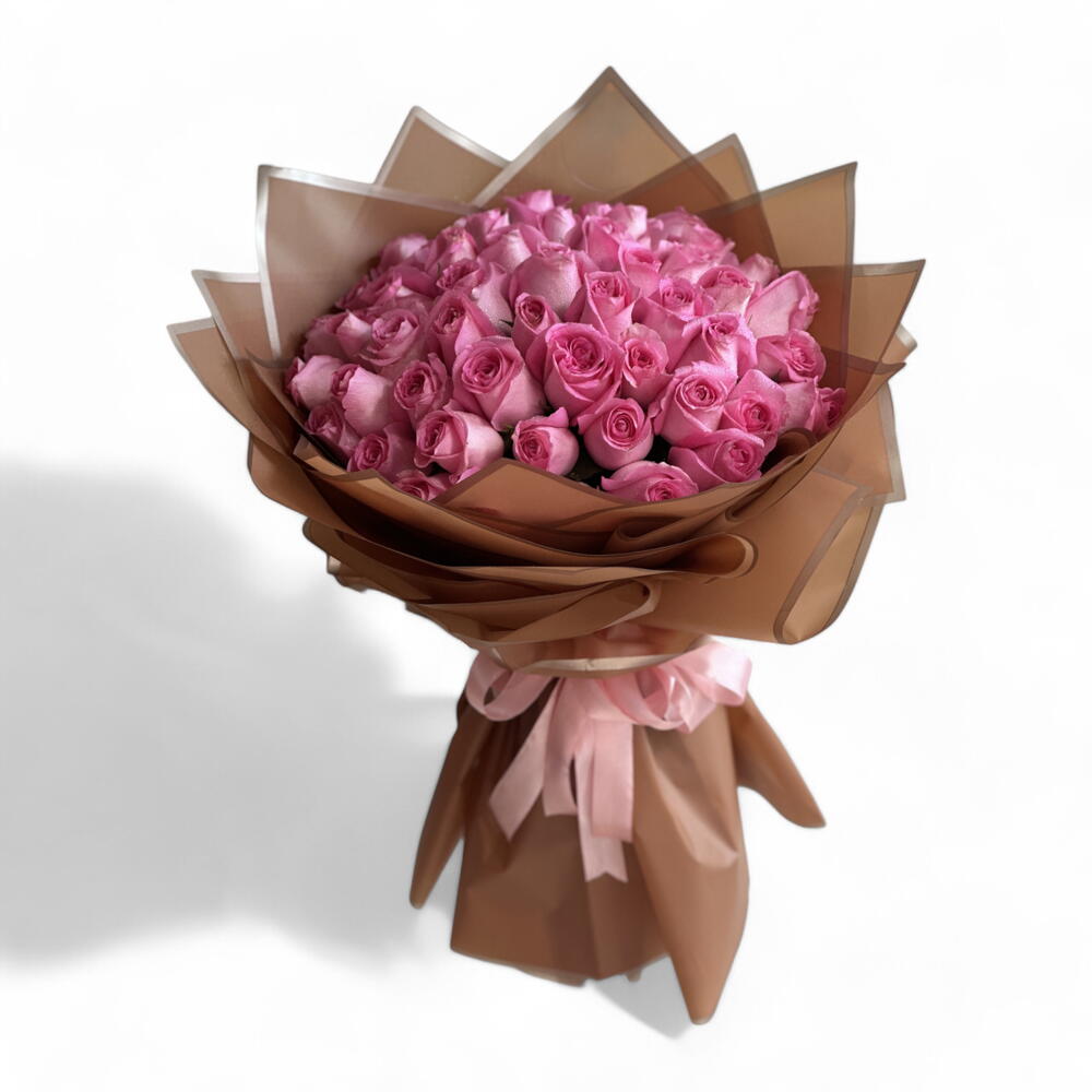 Букет из 50 розовых роз с наполнителями в красивой упаковке