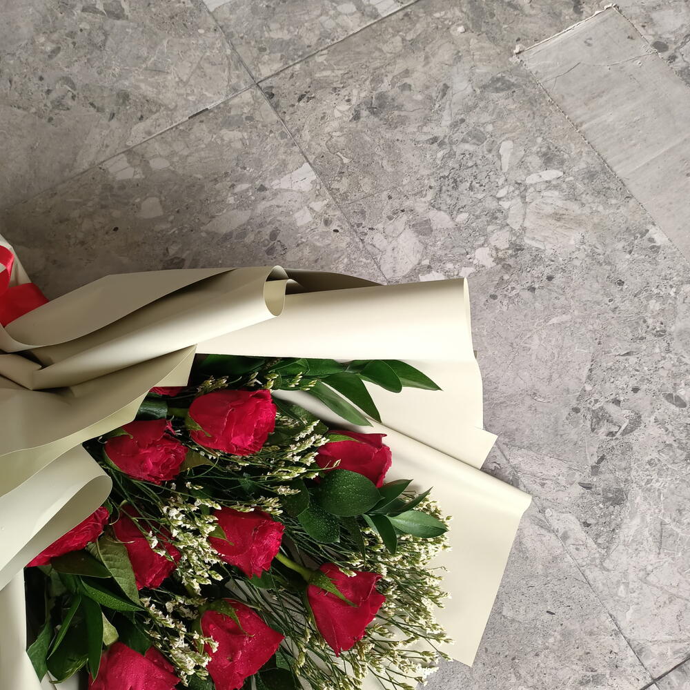 Limonium - 3 шт. карта - 1 шт. roses - 10 шт. рускус - 5 шт.