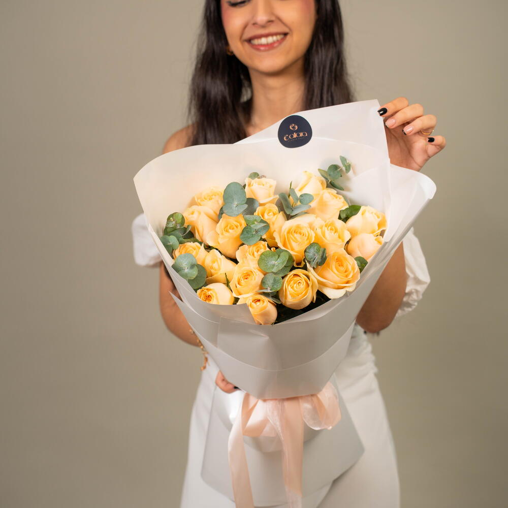 Eucalyptus - 2 шт. роза магия лавина персик - 21 шт.