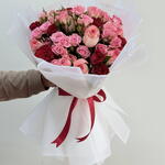 Ribbon - 1 шт. wrapping paper - 5 шт. red spray rose - 5 шт. red roses - 5 шт. pink roses - 5 шт. розовые спрей-розы - 5 шт.