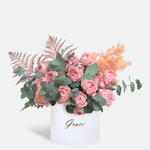 Rosé Radiant в коробке содержит элегантные розы розового оттенка, расположенные в изящной роскошной коробке — идеально подходит для выражения любви, признательности или празднования благодаря вечной красоте и изящному очарованию.