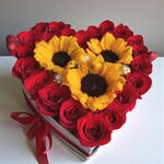 Коробка-сердце 21 красная роза подсолнухи Ferrero Rocher | Дубайский подарок любви