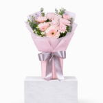 Eucalyptus - 3 шт. chamomile - 2 шт. pink Gerbera - 3 шт. light pink rose - 3 шт. светло-розовая гвоздика - 3 шт.