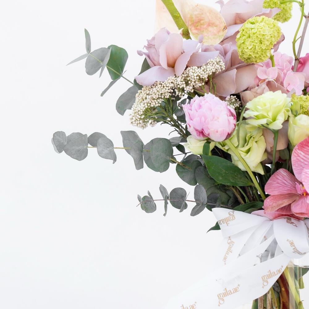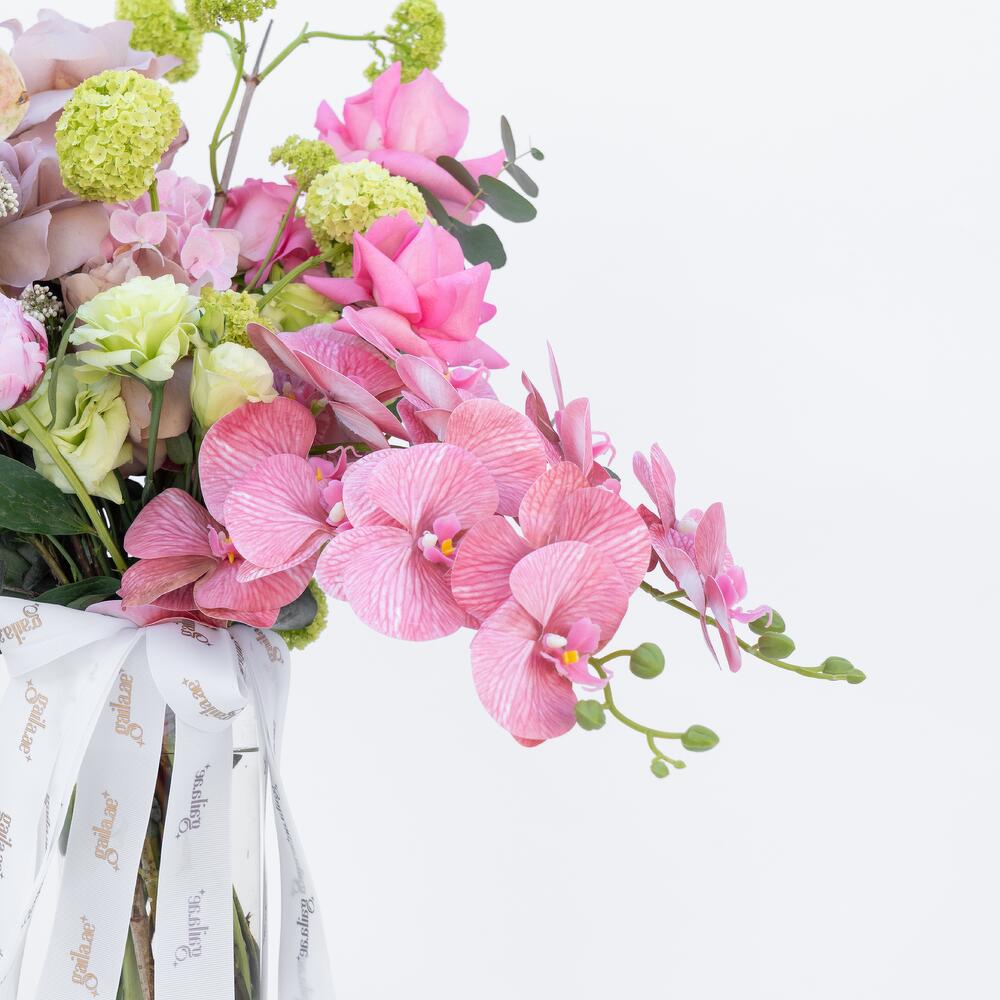 Окунитесь в утонченную элегантность нашего специального букета от Florists Special. Созданный с любовью, этот эксклюзивный ансамбль включает в себя 4 ароматные веточки эвкалипта, 4 смелых стебля розовых роз, 3 игривых цветка пинг-понга, 3 нежных розовых лизиантуса и 2 потрясающие розовые орхидеи. Симфония розовых оттенков и текстур, она идеально подходит для того, чтобы сделать любое событие незабываемым. Побалуйте свои чувства и преобразите окружающую обстановку этим освежающим цветочным шармом.