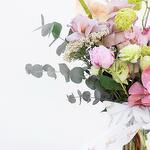 Eucalyptus - 4 шт. rose pink - 4 шт. ping pong - 3 шт. lisianthus pink - 3 шт. pink orchid - 2 шт.