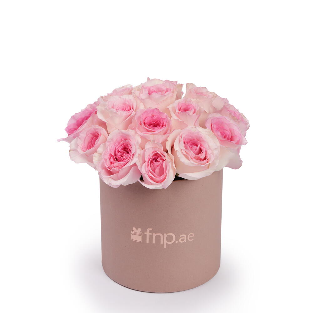 Яркие тёмно-розовые розы Jumilia в милой розовой коробке, отлично подходят для любого особого случая.