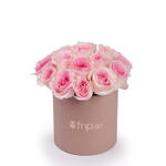 насыщенные тёмно-розовые розы джумилия в милой розовой коробке - 18 шт.