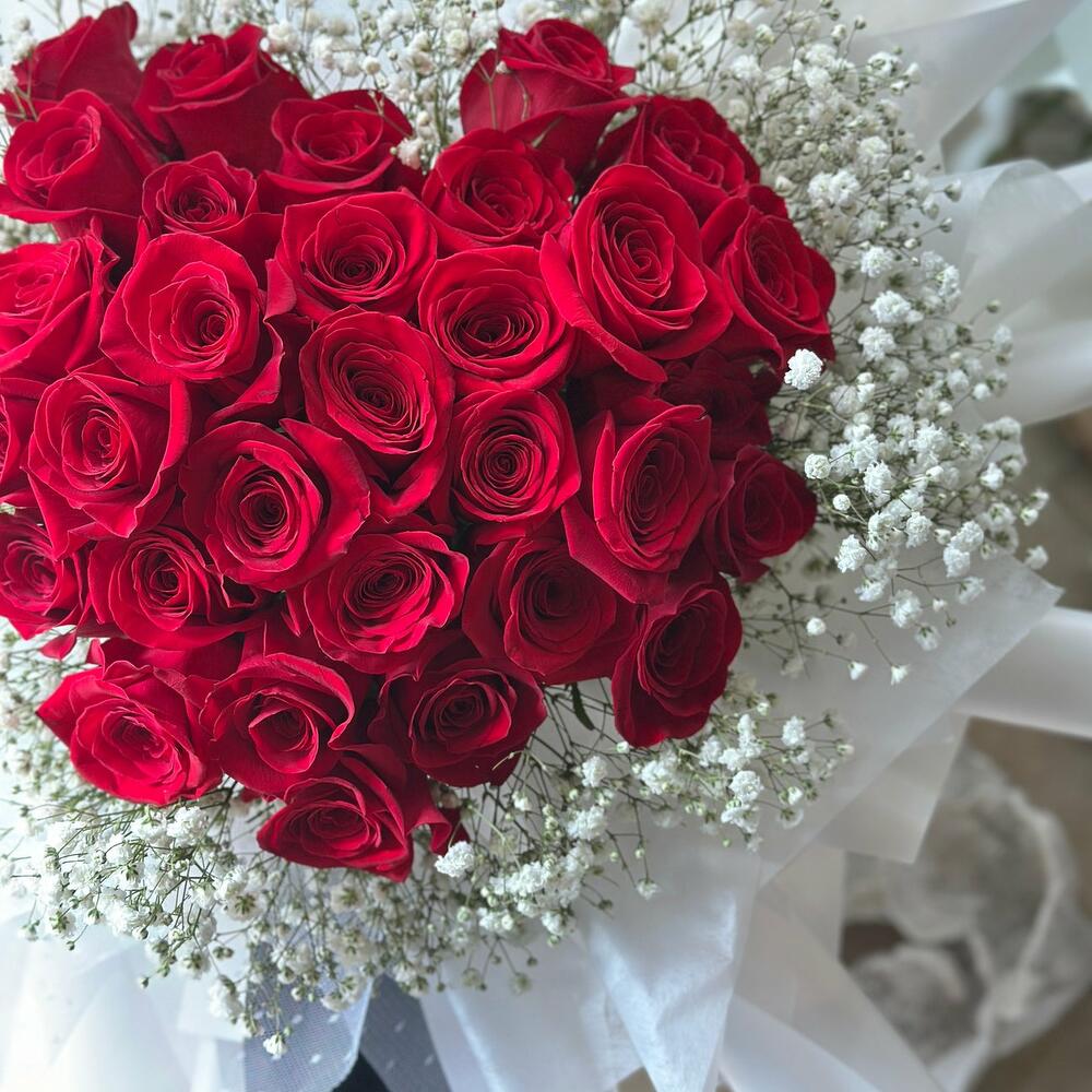 gypsophila white - 20 шт. red roses - 51 шт.