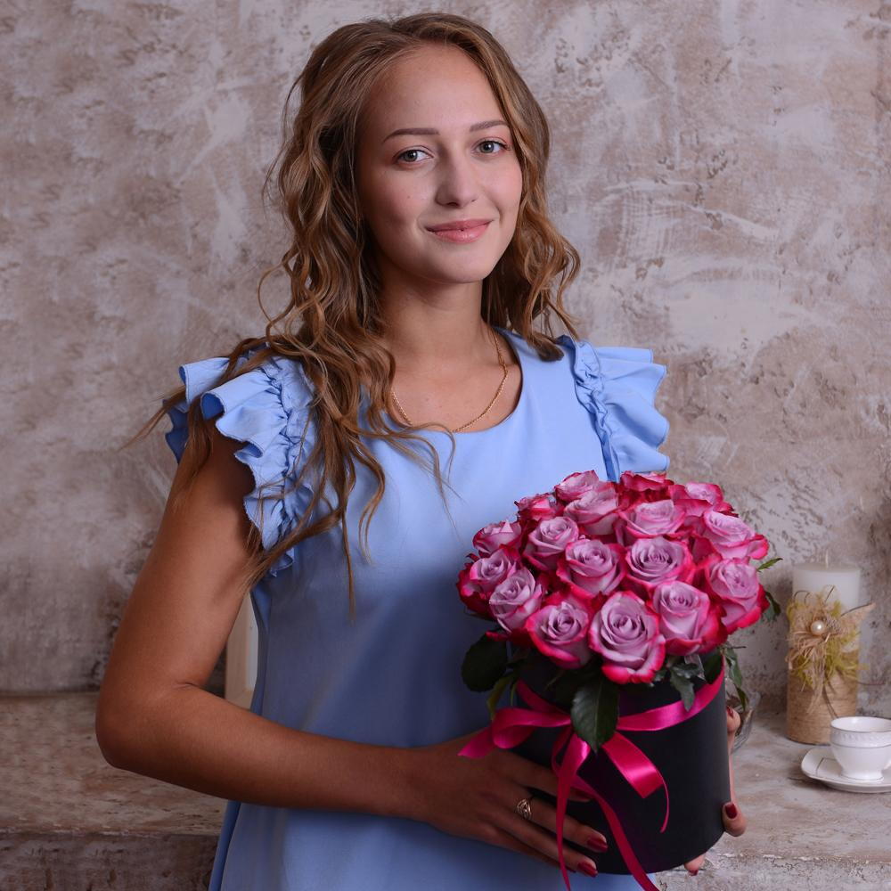 25 лавандовых роз в коробке.
