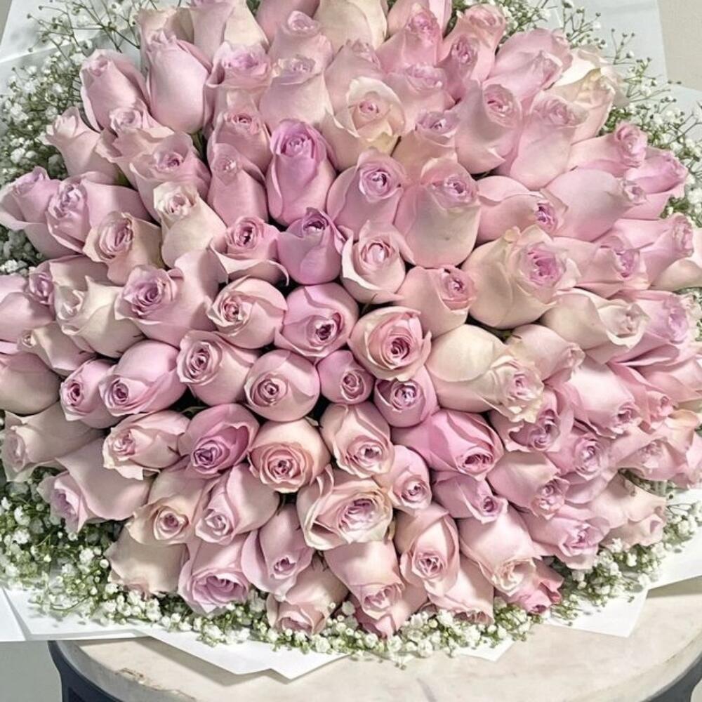 gypsophila white - 20 шт. розы розовых и фиолетовых оттенков - 99 шт.