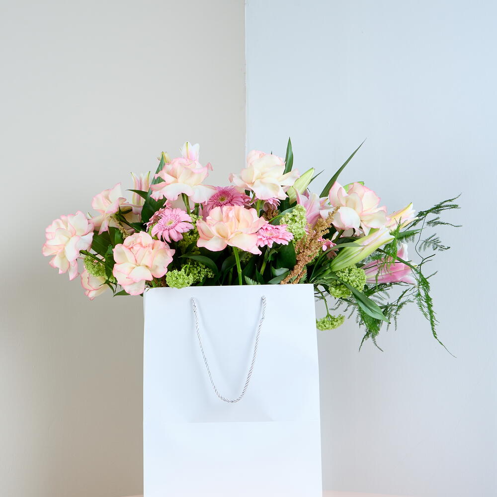 Подарочный пакет с цветами Rosy Glow