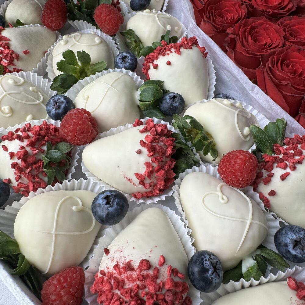 chocolate covered strawberries - 20 шт. red roses - 45 шт.