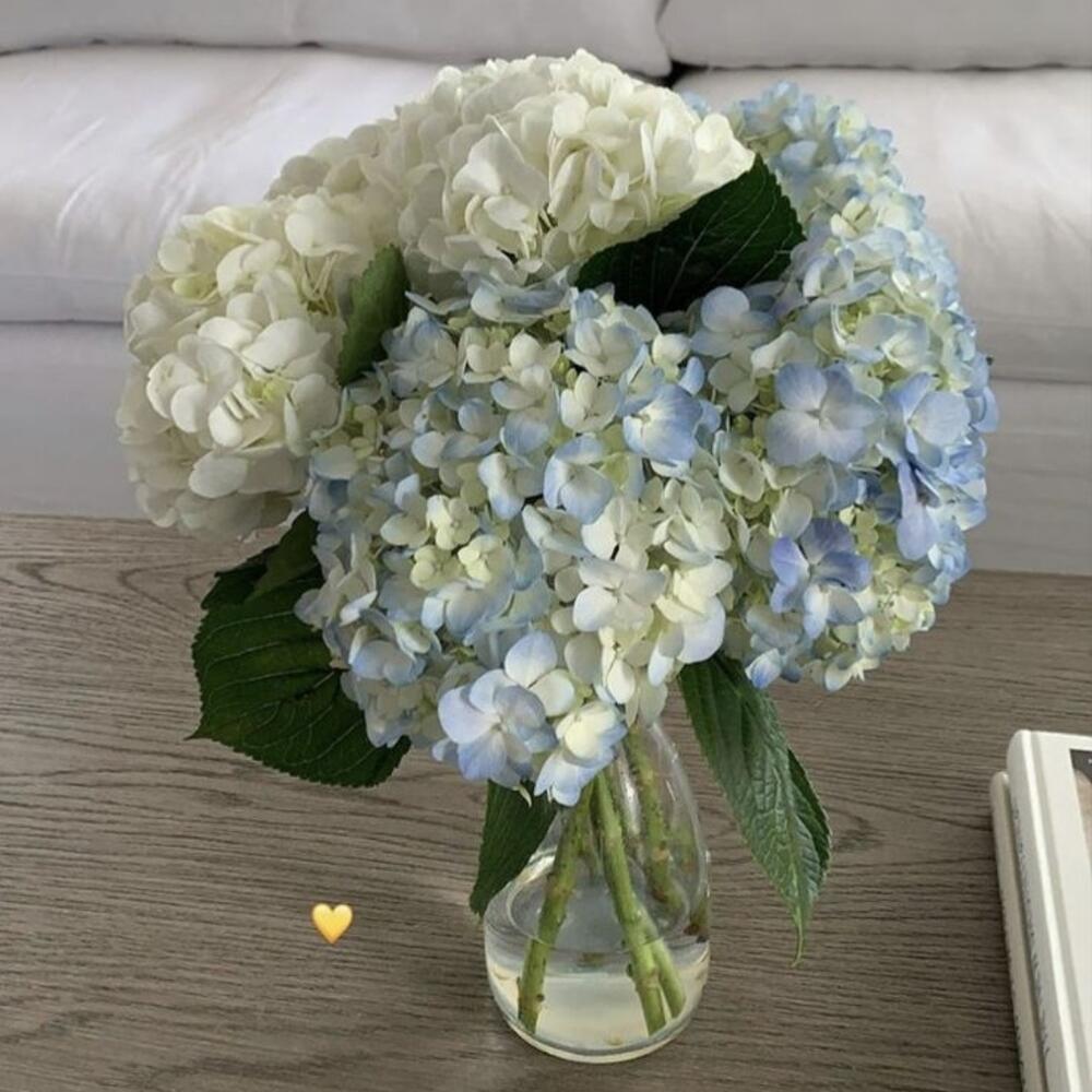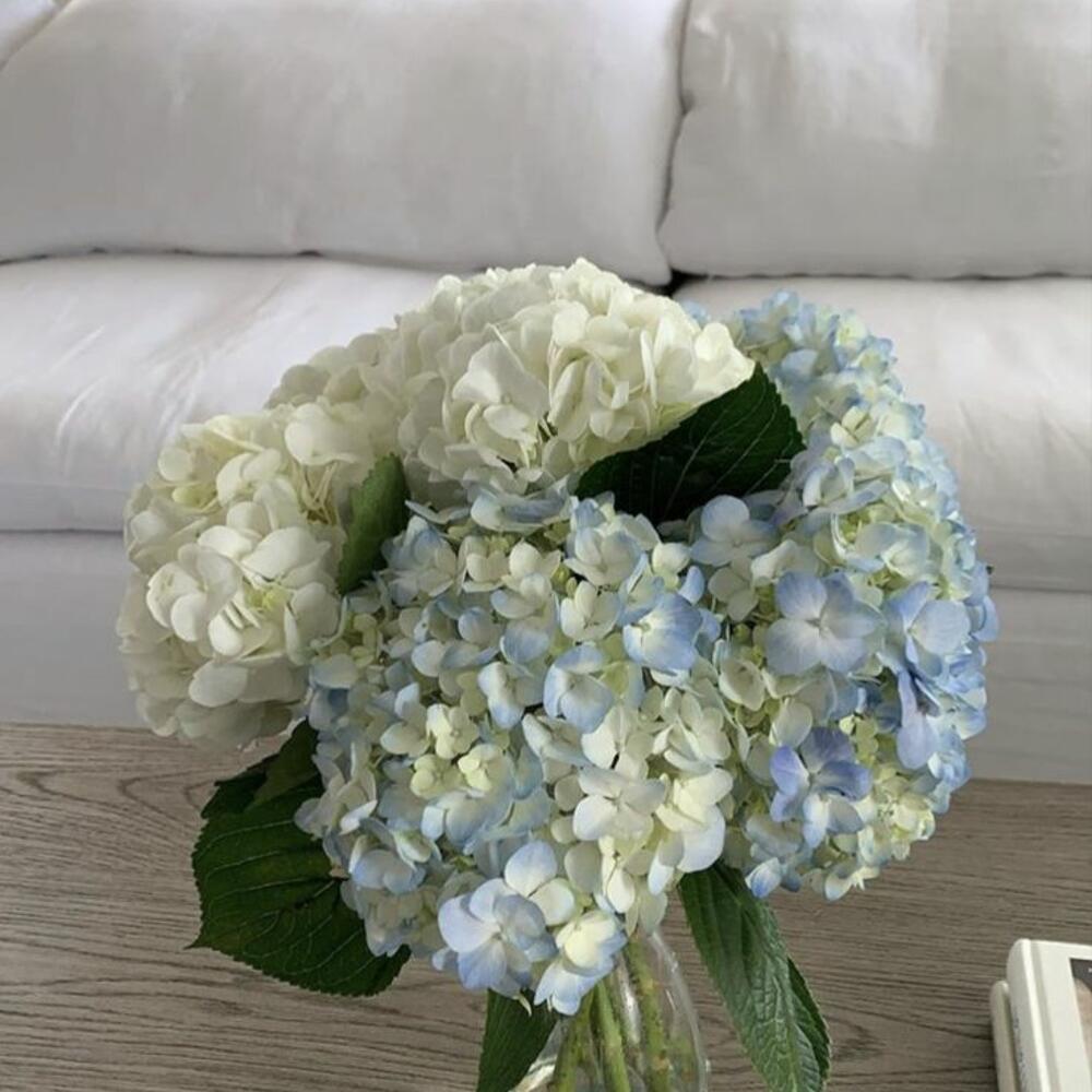 Этот элегантный букет представляет собой изящную композицию нежных белых и голубых гортензий, красиво оформленных в прозрачной стеклянной вазе. Пушистые, похожие на облака соцветия создают умиротворяющее и успокаивающее зрелище, символизируя грацию, чистоту и искренние чувства. Окружённый пышной зеленью, этот букет прекрасно подходит для выражения мира, утешения или нежной привязанности — он идеален для свадеб, вечеринок в честь будущего малыша, подарков в знак соболезнования или минималистичного домашнего декора.