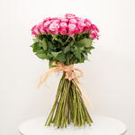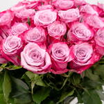 Потрясающий букет из 35 фиолетовых роз, воплощающий элегантность и очарование. Насыщенный фиолетовый оттенок символизирует восхищение, достоинство и тайну, делая эту композицию изысканным выбором для выражения особенных чувств и празднования значимых моментов. Идеально оформленный, чтобы произвести неизгладимое впечатление, этот букет добавляет нотку утончённости любому событию.