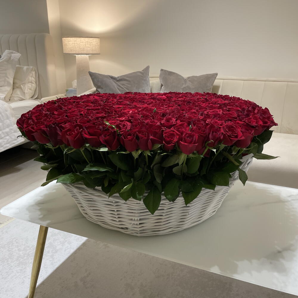 Позвольте себе насладиться элегантностью нашего специального предложения от флористов, предлагающего роскошную композицию из 401 роскошной красной розы, великолепно оформленной в большой, безупречно белой корзине. Этот великолепный букет — квинтэссенция любви и нежности, идеально подходящий для выражения самых глубоких чувств любимым. Сделайте роскошный жест с этой вечной классикой и наполните воздух чарующим очарованием этих восхитительных роз.