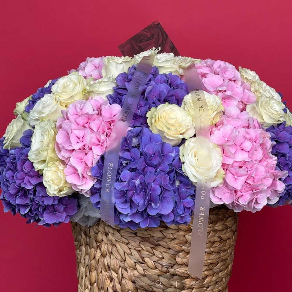 Basket - 1 шт. гортензии розовые - 12 шт. roses - 40 шт. фиолетовые гортензии - 12 шт.