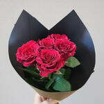 Этот элегантный букет состоит из пяти насыщенных красных роз, каждая из которых символизирует любовь и страсть. Насыщенные красные оттенки прекрасно дополняются черной упаковкой, создавая современный и изысканный образ. Простой, но эффектный дизайн делает этот букет идеальным выбором для выражения романтических чувств по особым случаям, таким как годовщины, День святого Валентина или просто в качестве жеста восхищения. Компактный размер и смелая элегантность делают его идеальным подарком для особенного человека. Для ухода регулярно меняйте воду и подрезайте стебли примерно на 1 см каждые несколько дней, чтобы розы оставались свежими. Поставьте букет в прохладное место, защищенное от прямых солнечных лучей, чтобы он сохранил свою красоту.