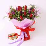 Букет «Алая красота» из 19 тюльпанов и Ferrero Rocher