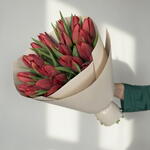 Ощутите завораживающую привлекательность этого моно-букета, состоящего из 25 потрясающих красных тюльпанов. Эти завораживающие цветы искусно оформлены, создавая роскошную, привлекающую внимание композицию, которая придаёт любому окружению нотку элегантности и страсти. Погрузитесь в богатство этих завораживающих красных тюльпанов, идеально подходящих для выражения любви, восхищения или просто чтобы скрасить любой день.