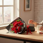 Шикарная и современная интерпретация классической романтики, этот букет из 15 сияющих красных роз воплощает страсть и элегантность. Созданный с учётом последних флористических трендов, он является идеальным выражением любви и утончённости. Чтобы ваши свежие цветы сохраняли яркость, подрезайте стебли под углом, меняйте воду ежедневно и ставьте их в прохладном месте, вдали от прямых солнечных лучей и сквозняков 30 X 45