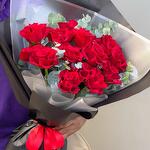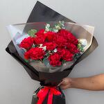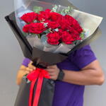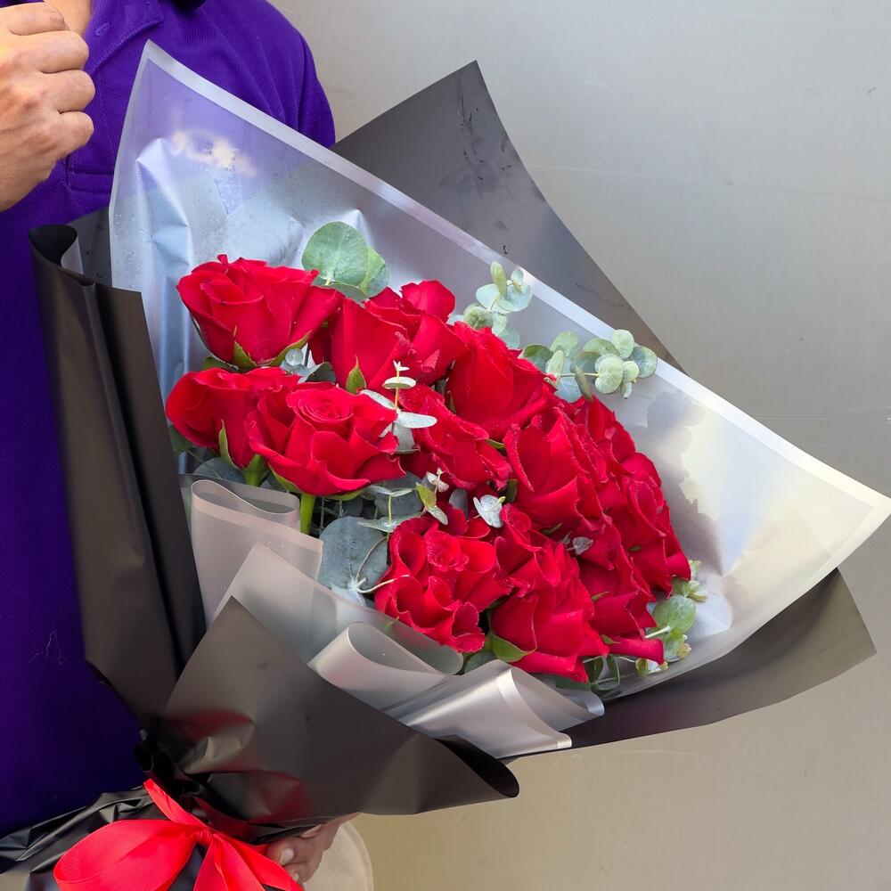 Современная романтика | 15 красных роз в стильной дизайнерской упаковке