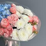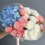 Spray rose - 3 шт. Hydrangea - 1 шт. dianthus - 3 шт. дизайн упаковки - 1 шт. кустовая хризантема - 2 шт.