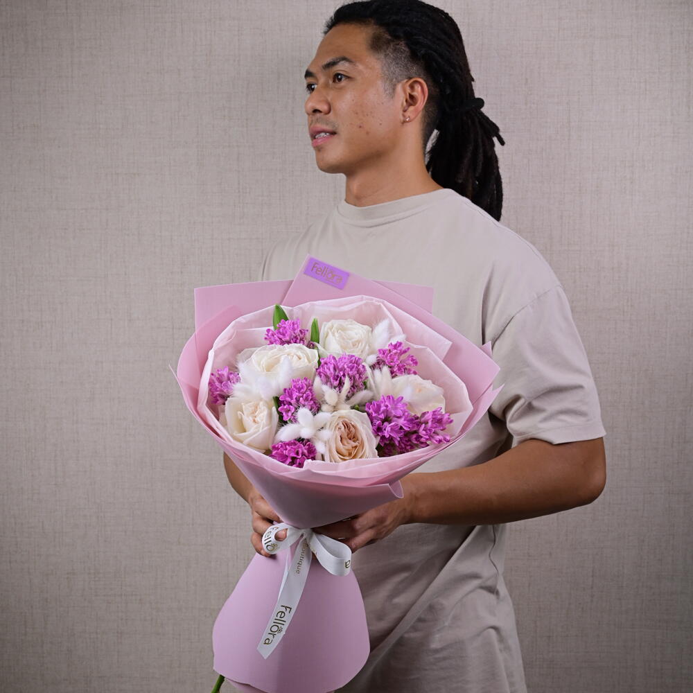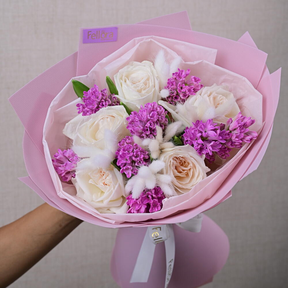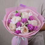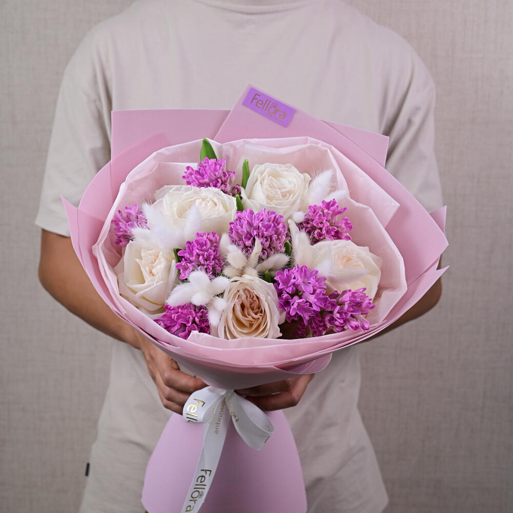 Погрузитесь в спокойствие природы с нашим букетом «Безмятежный луг». В этой изысканной композиции — 9 стеблей душистых гиацинтов, 7 элегантных белых роз О'Хара и 20 стеблей невесомой пампасной травы, создавая гармоничное сочетание нежных цветов и мягких фактур. Идеален для любого случая, этот букет привносит нотку спокойной красоты и элегантности в любое пространство, становясь идеальным подарком или эффектным центральным украшением вашего дома. Почувствуйте умиротворяющее очарование луга в полном цвету с этим завораживающим цветочным шедевром.