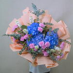 Украсьте любое торжество нашим букетом «Сад безмятежности», пленительным сочетанием элегантности и очарования. В эту изысканную композицию входят следующие цветы: Голубая гортензия: Символизируя изящество и красоту, эти пышные цветы добавляют нотку изысканности и глубины. Белая матиола: Известная своим восхитительным ароматом, эта роза дарит чистоту и свежий, манящий аромат. Светло-фиолетовые гвоздики: Эти нежные, нежные лепестки, символизирующие восхищение и очарование, добавляют нежный штрих цвета. Фиолетовые альстромерии: Эти яркие цветы, символизирующие дружбу и преданность, привносят тепло и радость. Эвкалипт: Эти листья, добавляя освежающую зелень, дополняют букет своим успокаивающим ароматом и элегантным видом. Букет «Сад безмятежности» идеально подходит для дней рождения, годовщин или просто для того, чтобы поднять кому-то настроение. Гармоничное сочетание синего, белого и фиолетового цветов создаёт умиротворяющую и чарующую композицию, делая её незабываемым подарком на любой случай. Пусть букет «Сад безмятежности» привнесёт частичку природной красоты и спокойствия в дом ваших близких.