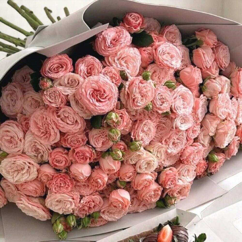 packaging - 3 шт. postcard - 1 шт. ribbon satin - 3 шт. krizal - 2 шт. instruction - 1 шт. strawberries in chocolate - 25 шт. box or bag - 1 шт. bush rose any color - 25 шт.